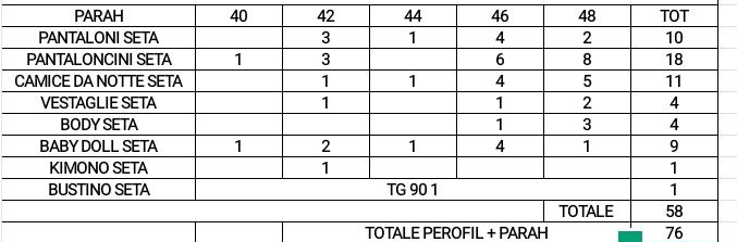 Stock Parah con tutti articoli in seta, gli articoli si presentano per il 70% inscatolati e per il 30% imbustati, gli articoli sono tutti puliti con i prezzi originali di vendita al dettagli sul cartellino.